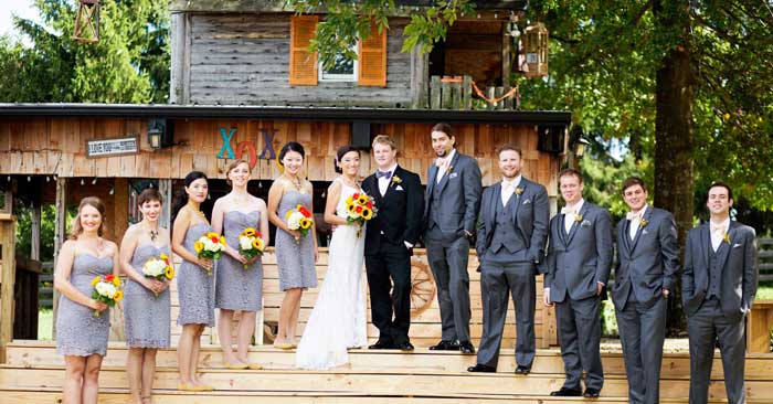 Wedding party in front of the Love Shack